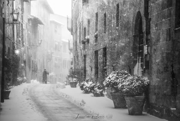 Even if I have pretty much never practiced this photographic genre and in 99% of cases I hate having human figures in my photos, I could not resist from photographing this scene. I was (positively) impressed by this old lady who, despite the snowstorm and the cold, still went out to do her daily shopping, from the pantry and the greengrocer. PS: I just posted a video of this wonderful day in Val d’Orcia, if you are interested go and see it!