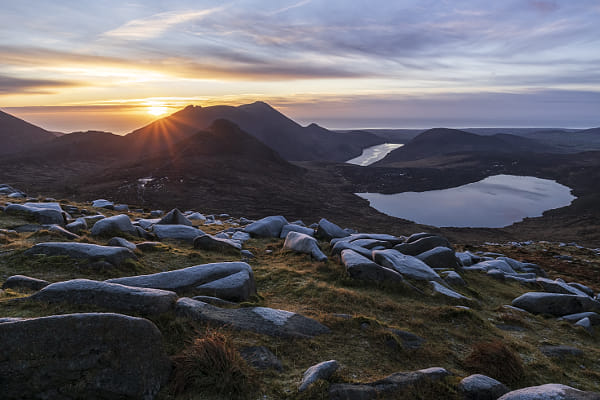 The sun rising over the Irish sea beyond Slieve Binnian.