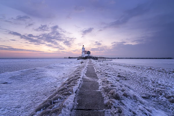 I’ve had this location on my mind for quite a while. Ideally, I’d liked to shoot it in winter conditions, ice, sunrise… Everything came together. The clouds disappeared just before sunrise, so blue hour gave the best conditions this day.