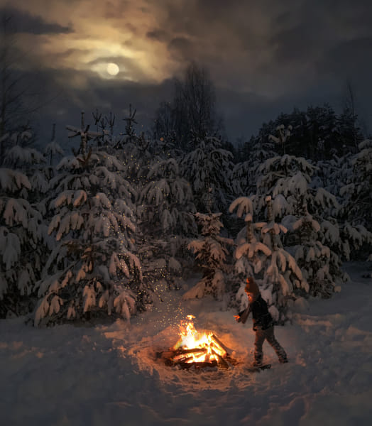 the fire in moonlight by Elena Shumilova