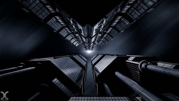 Image composite: top tower is the Totem Tower located in Paris, bottom one is the Lippo Tower located in Hong Kong.