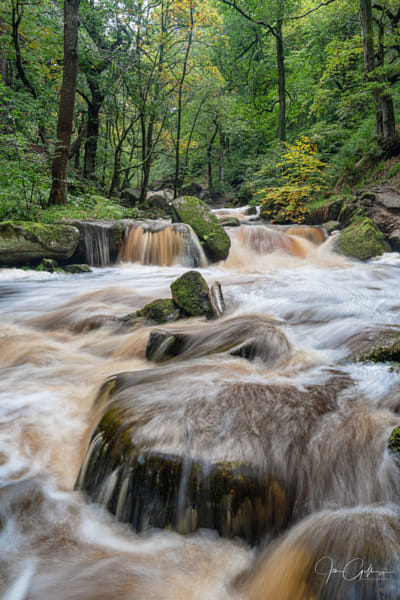 A series of cascades in Burbage Brook, taken at Padley Gorge in October 2020. The water was flowing fast following a couple of days rainfall but the autumnal colours are yet to appear.