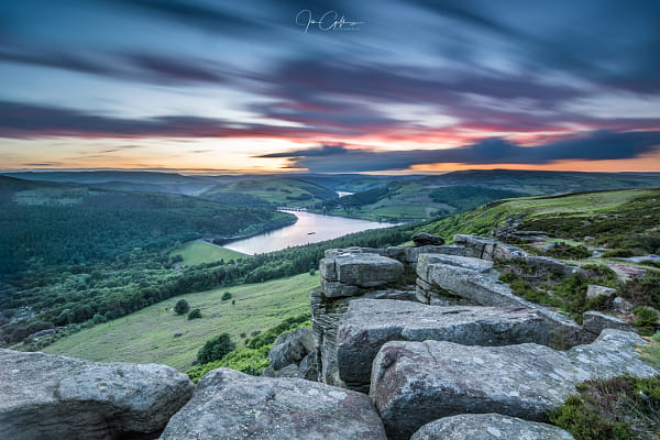 A long exposure over Bamford Edge during sunset.