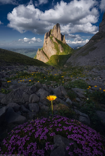 Wild flowers and insane peaks, can it possibly get any better? 🇨🇭 Post Processing tutorials & unique photo tours available at www.marcograssiphotography.com