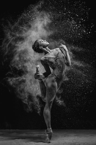 A couple of days ago I asked my followers on Instagram if they knew about @themirages , a project I’ve been working on for a couple of years now, the one I consider one of the most precious to me. I was very surprised to find out that 90% of my followers haven’t even heard about it once. I always thought that I could skip telling people on social media what I do. I mean, I post photos, stories, people leave their comments and likes, what else can I share? Well that was a mistake, and now I see that sharing more is important. When the project started in 2014, in our first shooting, I tried to combine the flexibility and body lines of the ballet dancers with additional shot dynamics of floating flour and the metaphor it added. To be completely honest, we sucked at first. 20 kilos of flour wasn’t nearly enough. With each shooting we increased the amount of flour, and now a single day of shooting requires us to bring 150 kilos. Unsurprisingly, not a single studio in Moscow allows my team in twice, because the flour clogs ventilation. There were only three of us in the team, and I’m still wondering how come we’re not buried in flour already. Right now you can purchase prints at TheMirages.com ❤️