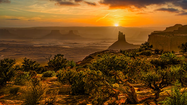 Sunset on a very windy evening at Dead Horse Point State Park near Moab, Utah.