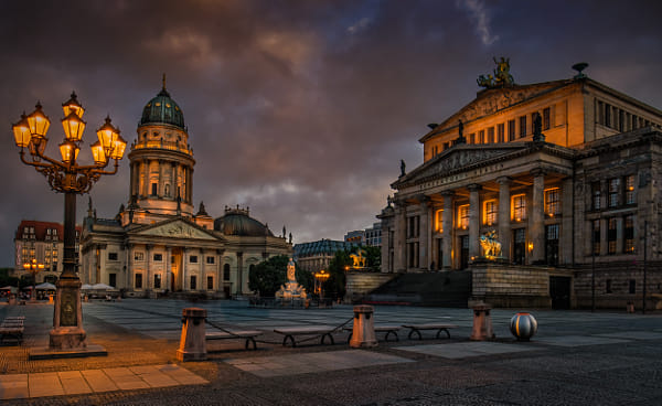 By the way: This is the Gendarmenmarkt at dusk, a square in Berlin with the Berlin Concert Hall and the German Church (destroyed by fire in 1945, rebuild till 1993). Have a good one and stay healthy.