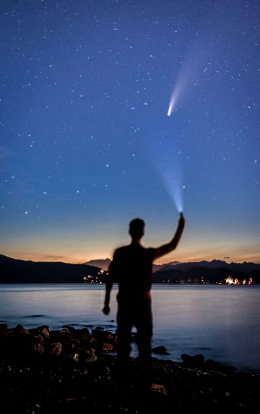 Comet NEOWISE flying over Spanish Banks, Vancouver
