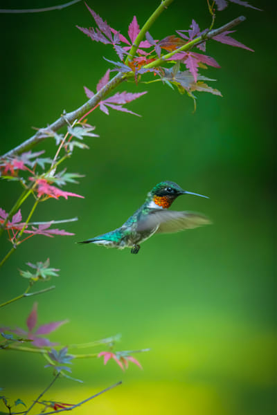 Hummingbirds are birds native to the Americas and constituting the biological family Trochilidae. They are the smallest of birds, most species measuring 7.5–13 cm (3–5 in) in length. The smallest extant bird species is the 5 cm (2.0 in) bee hummingbird, which weighs less than 2.0 g (0.07 oz). They are known as hummingbirds because of the humming sound created by their beating wings, which flap at high frequencies audible to humans. They hover in mid-air at rapid wing-flapping rates, which vary from around 12 beats per second in the largest species, to in excess of 80 in some of the smallest. Of those species that have been measured in wind tunnels, their top speeds exceed 15 m/s (54 km/h; 34 mph) and some species can dive at speeds in excess of 22 m/s (79 km/h; 49 mph). Hummingbirds have the highest mass-specific metabolic rate of any homeothermic animal. To conserve energy when food is scarce, and nightly when not foraging, they can go into torpor, a state similar to hibernation, slowing their metabolic rate to 1/15th of its normal rate.