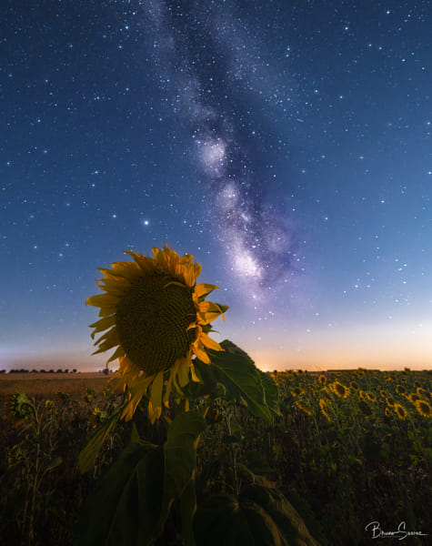 But she, stubborn, did everything to get my attention just for her. So it was, there I was admiring its pure and pearly beauty! But she, although persistent, was getting close to the horizon and soon would have to say goodbye to me! Already with solid red tones, as if she was furious for having to leave me, the Moon followed out of my eyes! Suddenly, as I focus my eyes on the majestic milky way again, I see a very adult and portentous sunflower approaching me. Leaving the middle of his group, who, like me, seemed to want to contemplate such beauty in the sky. ! Believe it or not, but this fantastic sunflower, asking for permission, sat down next to me and, also wanting to be away from the crowd, there he stayed with me in adoration!