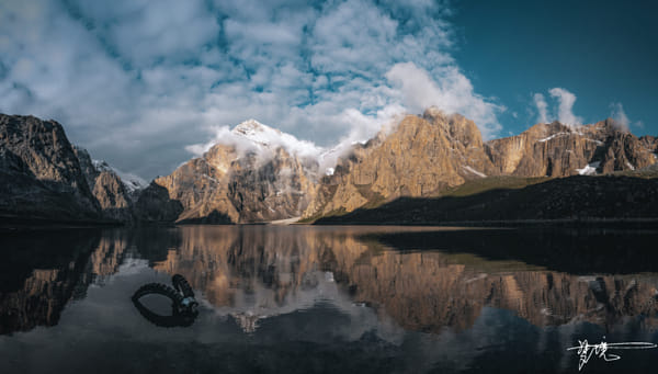 在天堂湖扎营的第二天早上,还在感叹这次金山看到了,但是倒影没看到,没想到没过多久真的就出现倒影了,于是采用接片的方式记录下了这个场面,色彩上也做了统一。