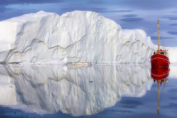 Iceberg and a red boat by Yian...