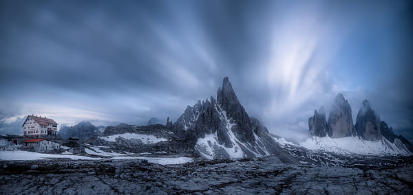 Long exposure panorama of Tre Cime di Lavaredo, South Tyrol, Italy