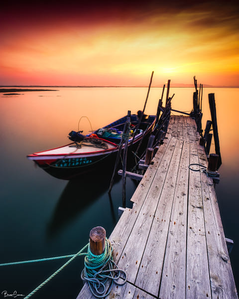 There she stands, waiting for another day of work, just moving her body as if she was dancing with the calm waters of the estuary, his partner for life! There she is, moored to the pier, waiting for her to be released so she can wander with her date. She’s Variadinha! I just stand there and watch how she, yearning for that freedom, seems so quiet standing there!! Have I told you how I love this place? The Carrasqueira palafitic pier recently got a renovation in its piles and platform for a substantial increase in its safety. An event that for me, as a photographer, was bad news at the same time that I totally understand the need for it so those who work there every day can do it better!
