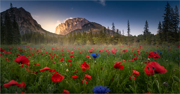 Composing von einer Mohnblumenwiese und Kreuzteich in Tragöß