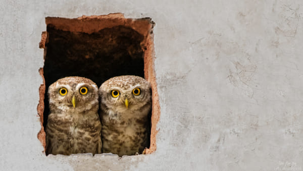 Two For Joy ! This hole in the wall is their mailing address and what they call home! With all the trees taken, these Spotted owlets are left with no choice but to roost amongst us ! This adorable duo are in fact the sentinels on duty and fiercely guarding a very precious asset. Eggs that would take their legacy forward in to the nights beyond them! The next generation! But for now it is Two for Joy!