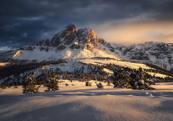 The sunset at Passo delle Erbe on Dolomites is a must-see both in summer but specially in winter when all is covered by snow with a dreamy look.
