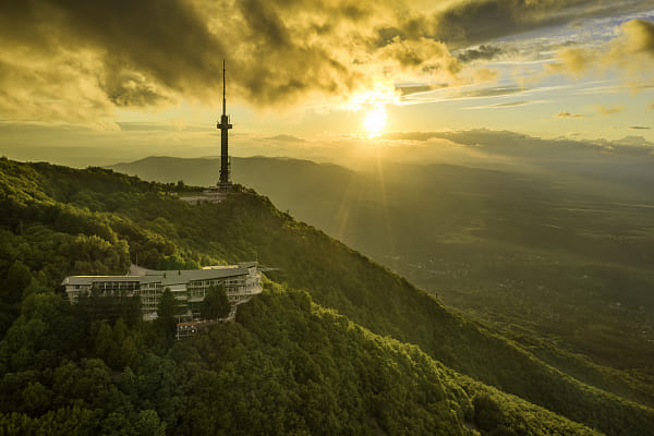 Vitosha, the ancient Scomius or Scombrus, is a mountain massif, on the outskirts of Sofia, the capital of Bulgaria. Vitosha is one of the symbols of Sofia and the closest site for hiking, alpinism and skiing. Convenient bus lines and rope ways render the mountain easily accessible. Vitosha has the outlines of an enormous dome. The territory of the mountain includes Vitosha nature park that encompasses the best known and most frequently visited parts. The foothills of Vitosha shelter resort quarters of Sofia; Knyazhevo quarter has mineral springs. Vitosha is the oldest nature park in the Balkans. The mountain emerged as a result of volcanic activity and has been subsequently shaped by the slow folding of the granite rock layers and a series of gradual uplifts of the area. It appears dome shaped at first sight, but the mountain, 19 km long by 17 km wide, actually consists of concentric denudational plateaus rising in tiers one above the other.
