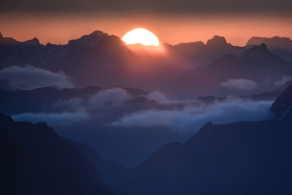 There is often some form of cloud off the west coast of New Zealand, and this is the first and only time I’ve captured a clear sight of the sun from the air, as it began to sink into the Tasman Sea. Not an easy task when racing the light to get home, at 6000ft, 150km/h and a magnified perspective at 300mm.