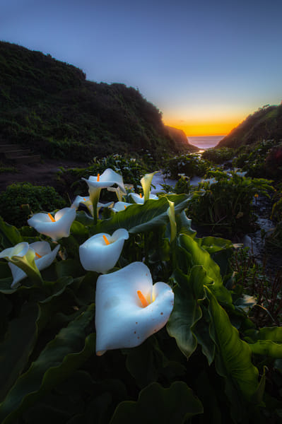 The faint alpenglow at the horizon enveloped the lush California calla lilies with a magic glow. Haida Polarizer Filter used to enrich the tone