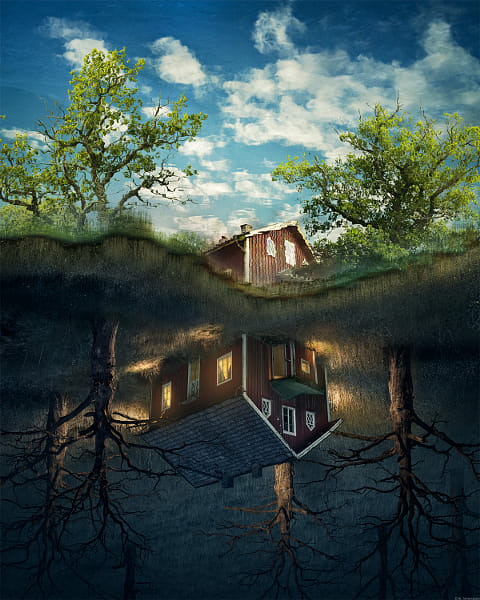A look into the past, and idea about how we tend to see more positive on the things that are behind us. Photographed at the same location in winter and summer in sweden.
