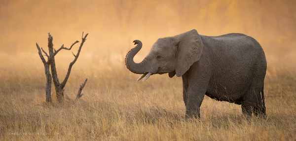 Elephants do not only have huge bodies, they also have a brain that weights five kilograms, so it’s no surprise that they are very intelligent animals. Recently, scientists have discovered that elephants use their trunk for a simplified version of sign language. The elephant’s trunk contains over 40,000 muscles, divided into as many as 150,000 individual units. The length, flexibility, and the many muscles means that an elephant can twist it into an endless variety of shapes. Not all elephants do this, but there are certain herds in Botswana that have developed a sign language with over 180 different messages. Scientists have only just started to decrypt this previously unknown method of communication, and they expect to find even more signs and messages as the research continues. This young elephant is a member of the herd that uses sign language within the group. As the herd was moving towards a water hole, this youngster suddenly stopped and looked at the grass in front of it. It then slowly raised its trunk to send a message to the rest of the herd: ‘Be careful, there is a spitting cobra in the grass.’ If you look at the trunk, you can clearly see the resemblance to a spitting cobra. It’s mind-blowing, really. Scientists say the elephant is the only animal in the world that uses its trunk for sign language. [Nikon D850, AF-S VR 180-400/4.0, 1/500 @ f/5.6, internal TC engaged, ISO 1600, handheld] Marsel | squiver.com
