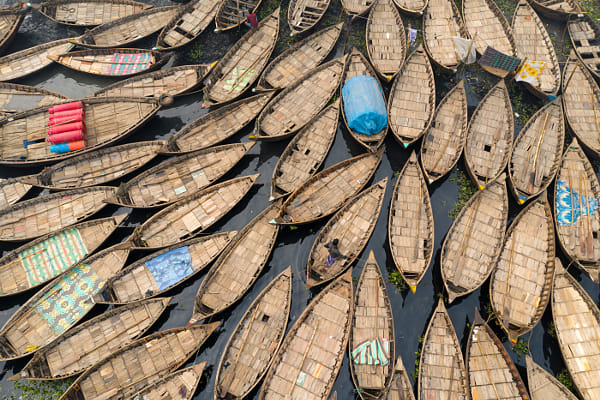 Video at: www.youtube.com/watch?v=KboiAlUjCSk Along the bangs of the Buriganga River in Dhaka Bangladesh, hundreds of small boats await to shuttle people back and forth across the river.