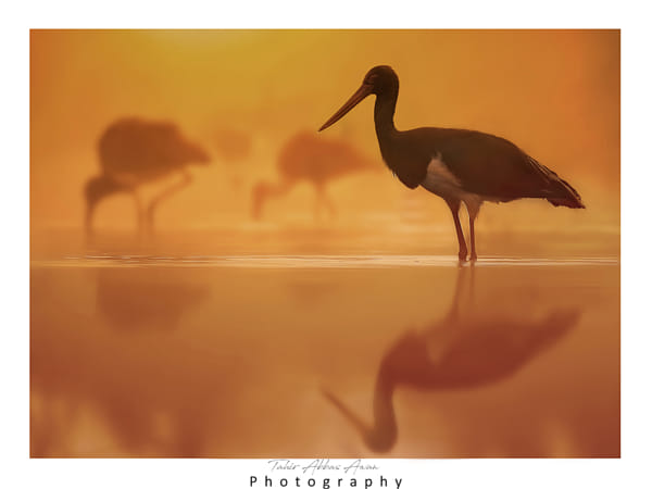 Black Stork at sunrise by Nature images