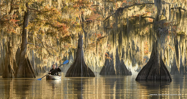 This is Rick, floating through the cypress trees on our Into The Cypress Swamps photo tour in Texas and Louisiana. Of all the tours we run, this is by far the most therapeutic one. There’s not a single place I’ve been that calms me down and gently caresses my inner chi like these magical swamps. I took this hero shot of Rick on an early morning in Louisiana, while I was standing in the water in my fashionable waders. Too bad you can’t see that, because I really look good in anything. The conditions that morning were great, and we spent a lot of hours on the water – photographing and relaxing. Some people think it’s hard work to do this kind of photography, but it’s really not. If you’ve never paddled before, you might go in circles for a few minutes, but after that, it’s a piece of cake. Yes, there are alligators, but at this time of year, the water is quite cold, and they’re basically hibernating. And if you’re really terrified of them, you can also photograph from the safety of your kayak – many of our guests have done that successfully. If this is something you’d like to do, then you’re in luck: we have a few spots left on this year’s Into The Cypress Swamps tour: squiver.com [Nikon D5, AF-S VR 80-400/4.5-5.6. 1/125 @ f/16, ISO 800, Gitzo tripod] Marsel | squiver.com