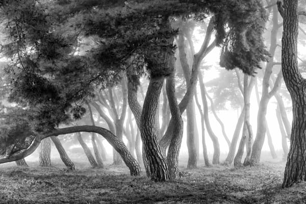 pine forest with dawn fog by Sung Hwan Lee