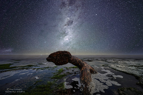 A giant anchor rusting into oblivion under the stars along the Shipwreck Coast in Victoria.