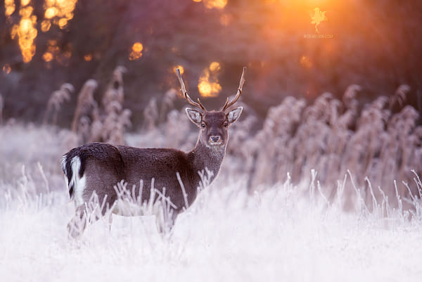 deer,fallow deer,dama dama,sunset,sunrise,snow,winter,cold,frost,hoar frost,rime,freeziing,white,light,cold,warm,buck,stag,animal,animals,mammal,mammals,wild animal,wildlife,nature,fine-art