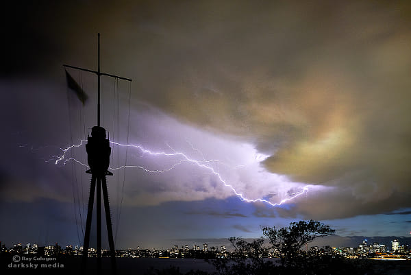 Lightning and thunderstorms rolling across the evening skies of Sydney.