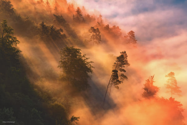 Pines Bathed In Light by Kilian Schönberger