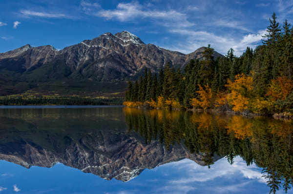 Pyramid Mountain reflecting in Patricia Lake on a beautiful Autumn morning.