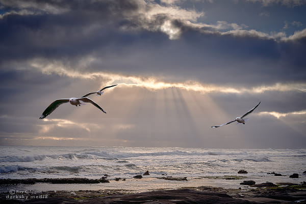 A trio of gulls over the surf at Wreck Beach on the Great Ocean Road in Victoria.