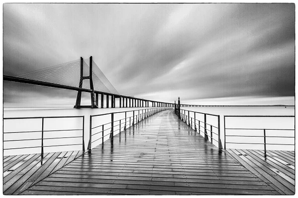 This to share with you one more shot from Vasco da Gama bridge. It was a strong morning storm that was broken by long exposure. Of course that I explored the composition from the reflections and lines.