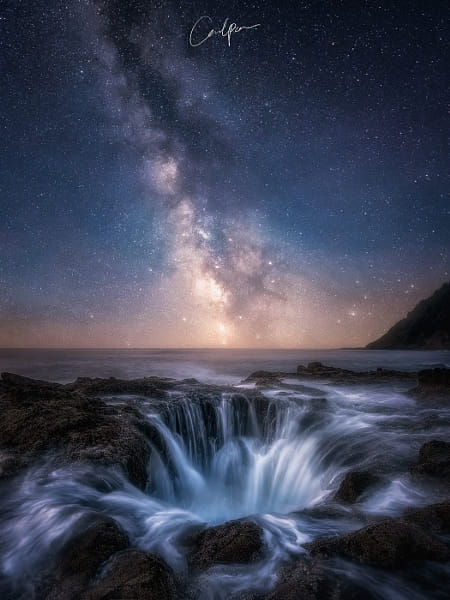 Beautiful Night at Thor’s Well, Oregon