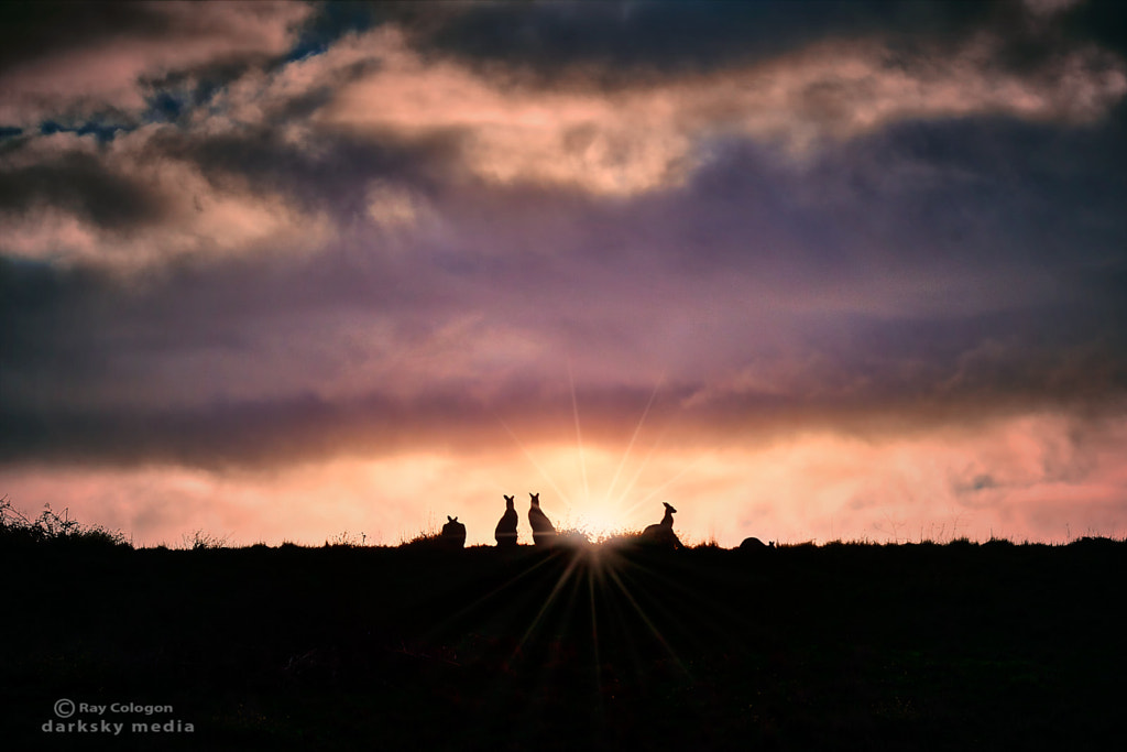 The tribal elders of a group of kangaroos keep watch as darkness descends over the Waratina gully on the highland moors of the outer northwest of Melbourne.