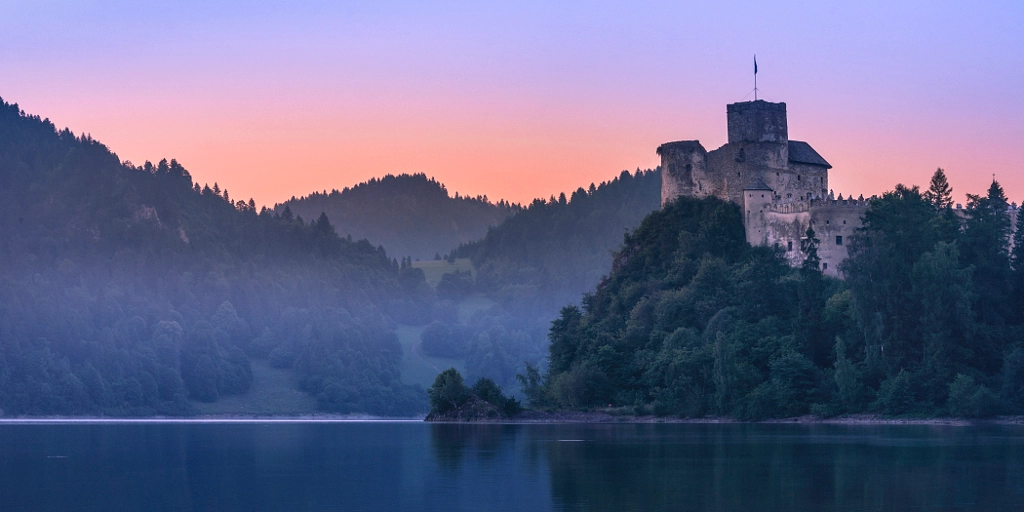 Lake Czorsztyn, at dawn. The castle was built in 1320.
