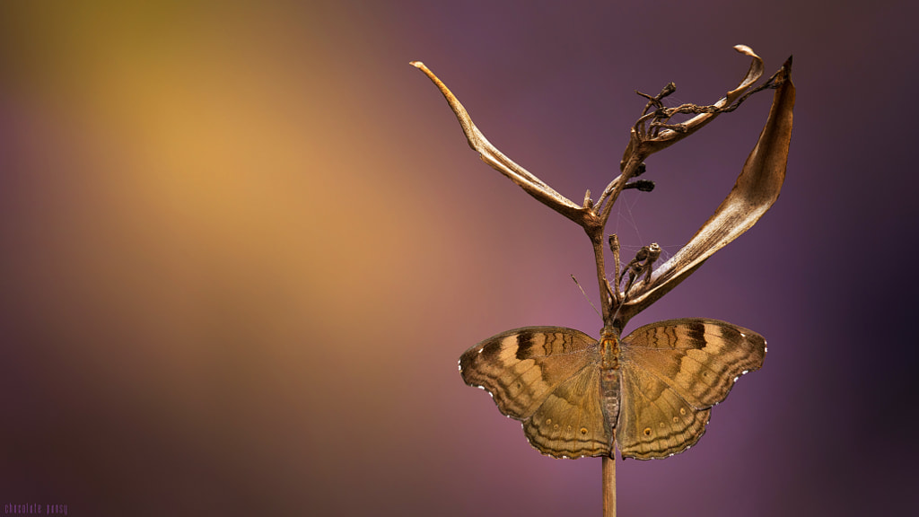 A Chocolate Pansy Butterfly on a dead flower. That would be the opposite of beauty and yet beautiful.