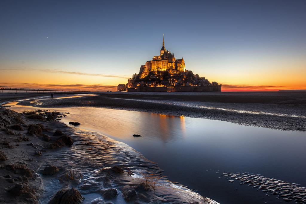 Reflections on the beach at Castle Point in New Zealand under a moonlight landscape