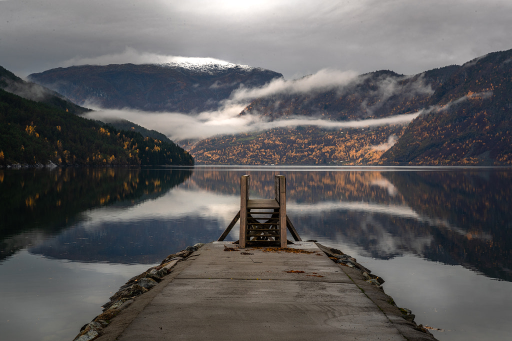 Sunrise Romsdalen, Norway. I have posted a version of this image before (that version is still up), but I edited it way too dark – I like this version better. One of those times where I was at the right place at the right time. The sun soon was obscured by the mountain to the right.