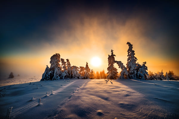 Winter sunrise on Pohorje hill, Slovenija