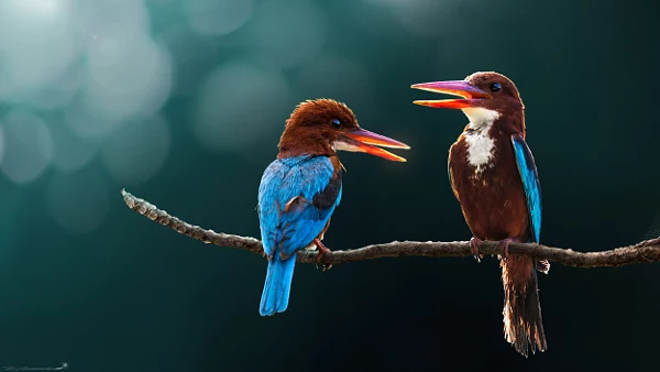 It is baby’s day out for the little Kingfisher. Mom keeps vigil and the tête-à-tête is almost one sided. More like the passing down of the Ten Commandments !