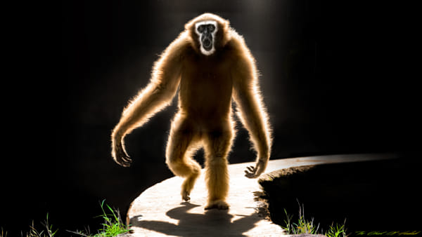 The Hoolock Gibbons are an exciting species of monogamous primates gifted with the power of bipedalism. They are more like a primitive and miniature version of the humans. And this one caught the Sun in its fur giving it a ghostly appearance!
