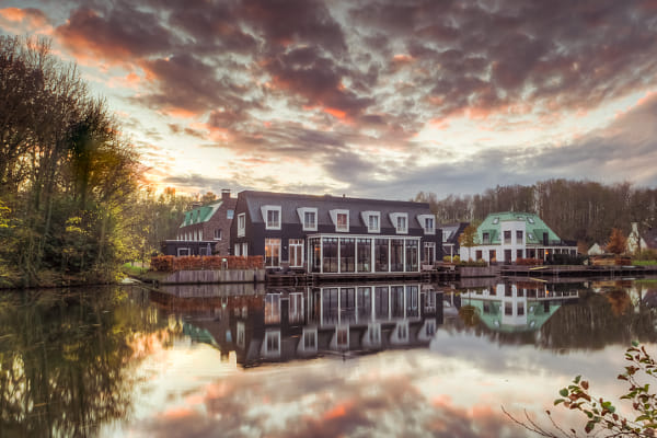 Call the fire brigade to stop the red clouds. At this location along the river De Vecht, a marina has been replaced by attractive houses situated around a harbor. The neighborhood is called Op Buuren Park.