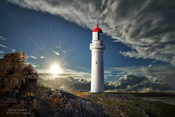 The cracked upper portion of the lighthouse tower at Aireys Inlet on the Great Ocean Road in Victoria.